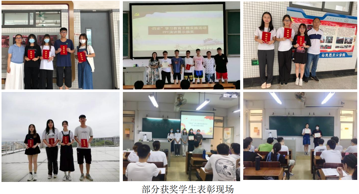 在马院前期的认真筹备下,在思政课教师的精心组织下,学生们兴趣浓厚,热情高涨,踊跃参与,积极贡献作品。经学生团队申报、所在班级思政课教师推荐、马院支委和教研室主任代表评审,共评选出获奖项目42项,其中特等奖1项、一等奖2项、二等奖12项、三等奖27项。由于新冠肺炎疫情原因,马院没有进行统一表彰,而是改由马院教师在各自班级开展获奖表彰。