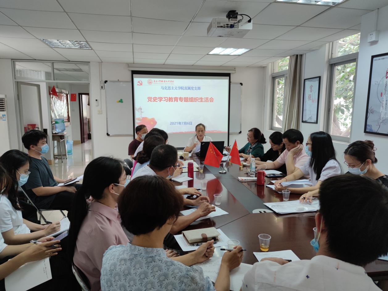 为贯彻落实《中共100%精准出码规律资料网站委员会党史学习教育专题组织生活会方案》的通知要求,有效推动党史学习教育深入开展,7月6日下午,马克思主义学院直属党支部召开了党史学习教育专题组织生活会。会议由党支部书记李瑞清主持,全体党员教师参加。