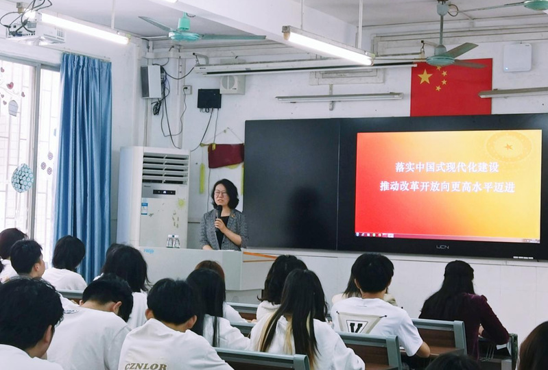 为深入学习宣传、贯彻落实习近平新时代中国特色社会主义思想和党的二十大精神,深入贯彻习近平总书记关于思政课建设的重要指示,强化学校党政领导抓思政课建设的主体责任,根据《广东省教育厅关于做好2023年秋季学期大中小学校党组织书记、校长上第一堂思政课工作的通知》要求,11月29日上午,学校党委副书记赵红在荔湾校区爱校楼401教室为同学们讲授“思政第一课”。荔湾校区部分学生与教师代表聆听了本次讲课。