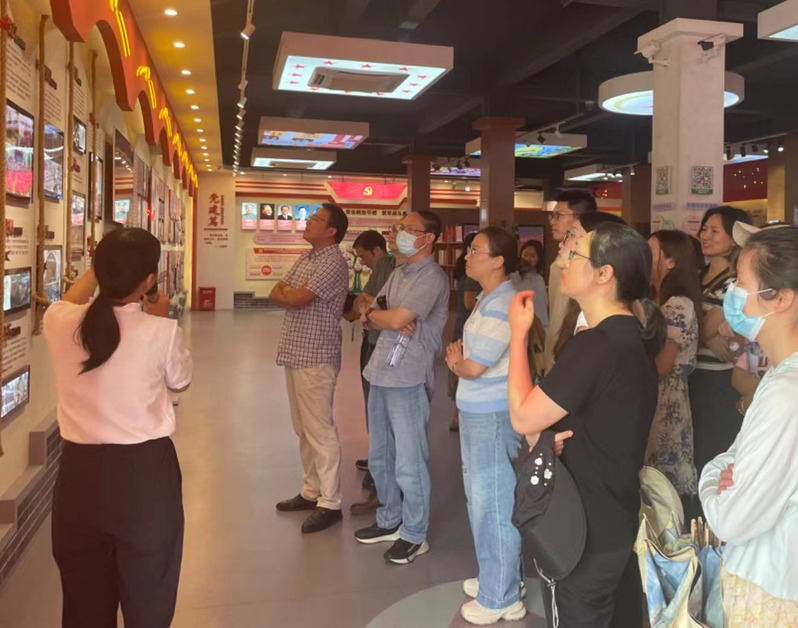 活动第一站来到龙门县政治生活馆参观学习,馆内设党史厅、党建厅、党教厅、党誓厅以及政治生活厅等五个功能厅,提供涵盖“红色传承教育、美丽党建示范、互动学习教育、党员咨询服务、党务知识竞赛、规范组织生活”等多位一体的政治教育服务。马院教师边观看文献资料和历史图片边聆听讲解,进一步了解了龙门县的党建事迹,深刻领略了中国共产党艰苦奋斗的不屈精神。馆内展示的优秀共产党员事迹与违法违纪案例的典型,时刻警醒党员干部筑牢思想堤坝,坚守廉洁底线,对于思政课教师党员而言这是一次深刻的党性教育和精神洗礼。参观结束前,在支部临时负责人宁晓菊的领誓下,全体党员佩戴党徽,高举右拳,面向鲜红的党旗重温入党誓词,更加坚定对党忠诚、为党的事业奋斗终身的信心和信念。