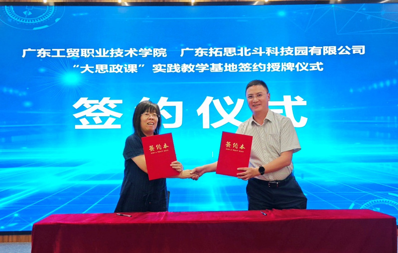北斗创新基地建设运营单位——广东拓思北斗科技园有限公司与我校马克思主义学院隆重举行了双方共建“大思政课”实践教学基地签约授牌仪式。广东拓思北斗科技园有限公司负责人鲜凯、副总经理欧图南与其他工作人员,和我校50余名师生共同参加了共建签约授牌仪式。在双方的共同见证下,欧图南和刘凤梅在合作协议上签字,鲜凯和宁晓菊共同为基地揭牌。