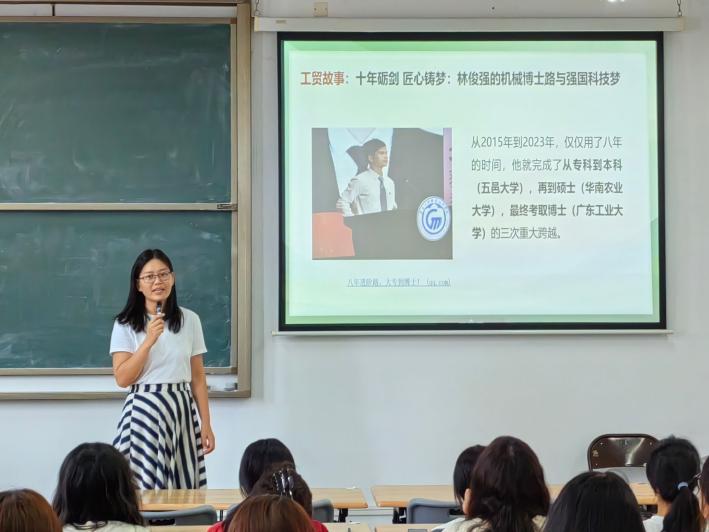 张夏青老师在讲授“思想道德与法治”课程第一章“领悟人生真谛 把握人生方向”时,将工贸学子林俊强从大专生逆袭成功考取博士的故事融入教学,作为人生目标与奋斗精神的鲜活例证。通过案例分析,引导学生树立正确世界观人生观价值观,明确人生追求,激发学习动力。学生反响热烈,深受鼓舞,纷纷表示要为实现梦想不懈奋斗。