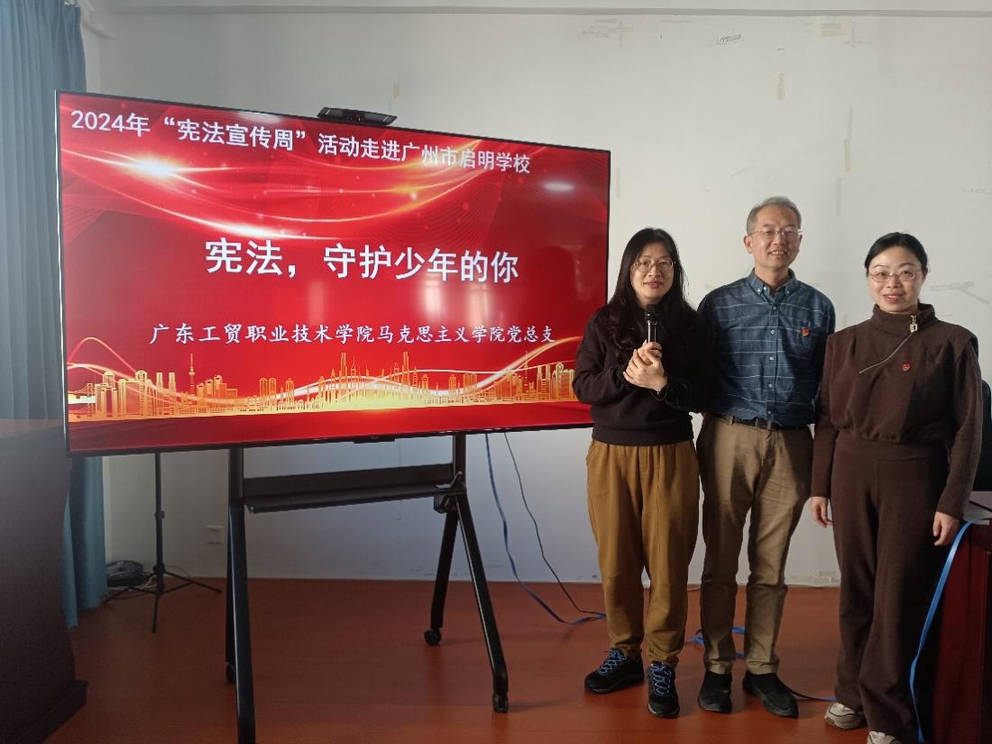 今年12月4日是我国第11个“国家宪法日”,为深入学习贯彻党的二十大精神、党的二十届三中全会和全国教育大会精神,加强宪法法治教育,12月3日下午,应广州市启明学校邀请,马克思主义学院党总支派出张薇薇和毛玲两位党员教师进校为师生开展国家宪法宣传周专题讲座。