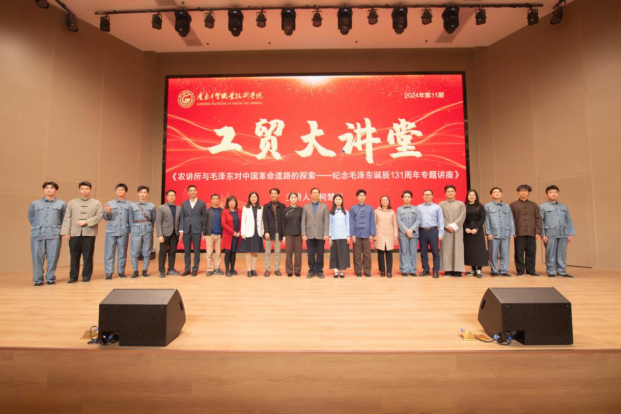 随着红色音乐舞台剧的精彩谢幕,2024年第11期“工贸大讲堂”也画上了圆满的句号。此次活动通过讲座与音乐舞台剧相结合的创新形式,为在场的领导、老师及同学们带来了一场思想的盛宴与视觉的享受。大家纷纷表示,广州作为近代中国革命的策源地,其历史地位与贡献在此次活动中得到了深刻的展现。通过生动的讲解与演绎,大家不仅对中国革命历史有了更加全面而深刻的理解,更被其中蕴含的爱国情怀与奋斗精神所感染。此次大讲堂坚定了大家为实现中华民族伟大复兴的中国梦而努力奋斗的信念,进一步激发了大家的爱国热情与责任感。