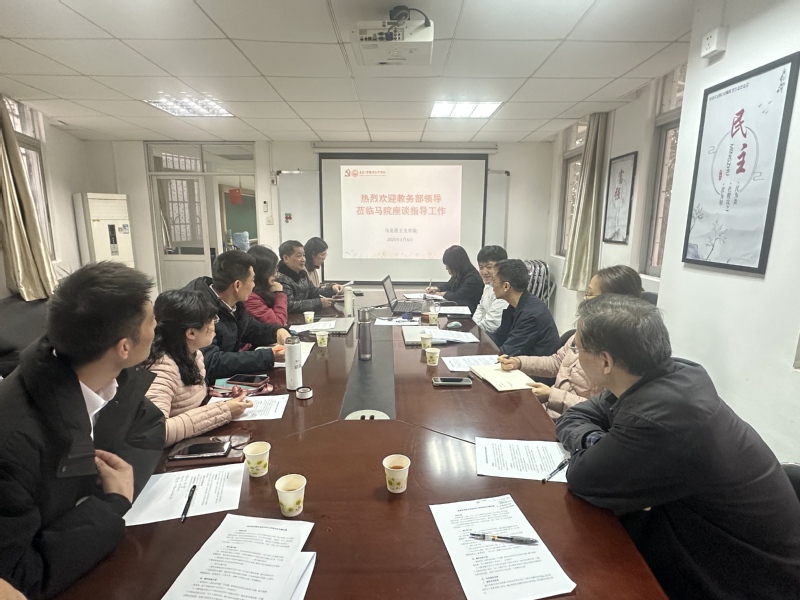 为了全面落实教育部关于开展《2024-2025 学年高校思政课课堂教学提升行动》的通知要求和《普通高校思政课教师队伍建设规划(2025-2027年)》文件精神,更好地推进我校思想政治理论课建设内涵式发展,3月6日下午,学校教务部负责人何军拥到访马克思主义学院,与马院班子成员、各教研室主任和教师代表举行座谈,共商进一步加强和改进我校思想政治理论课建设的具体思路、方案和举措。