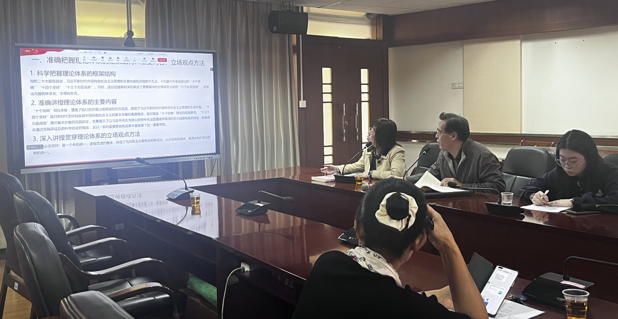 习概论教研室赵聪老师对《习近平新时代中国特色社会主义思想概论》进行总体说课,分别从课程定位与课程目标、教学内容与教学方法、教学资源与考核评价、教学设计与教学过程、教学创新与反思改进五个方面进行了介绍,指出本课程在创新实践教学、增强学情分析、盘活教学资源、数字赋能教学等方面还需要进一步完善和探索。在此次和广东汕头幼儿师范高等专科学校习概教研室的线上集体备课会中,希望相互学习和相互启发,为学生带来更优质、更具深度的思政课堂。