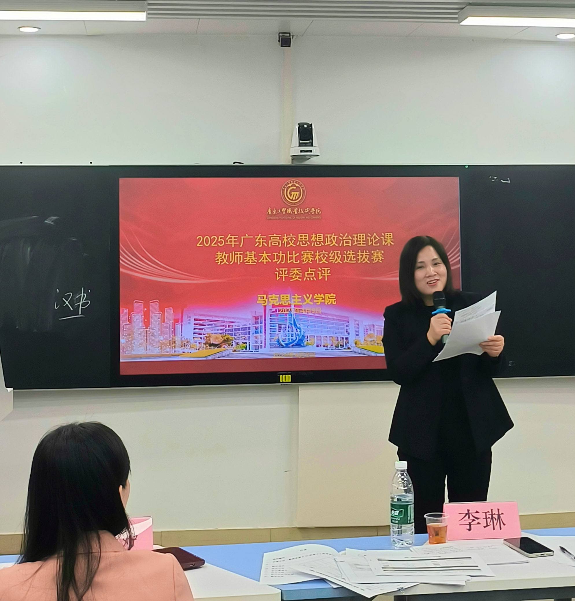 为深入学习贯彻习近平总书记在学校思想政治理论课教师座谈会上的重要讲话精神和习近平总书记对学校思政课建设作出的重要指示精神,努力推动思政课高质量发展,根据《广东省教育厅关于举办2025年度广东高校思想政治理论课教师教学基本功比赛的通知》文件要求,学校于2025年4月9日举办了校级选拔赛,马克思主义学院全体教师观摩比赛。