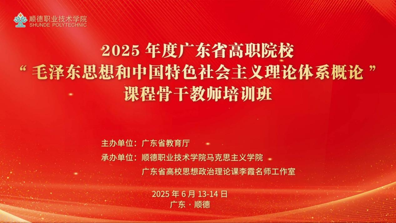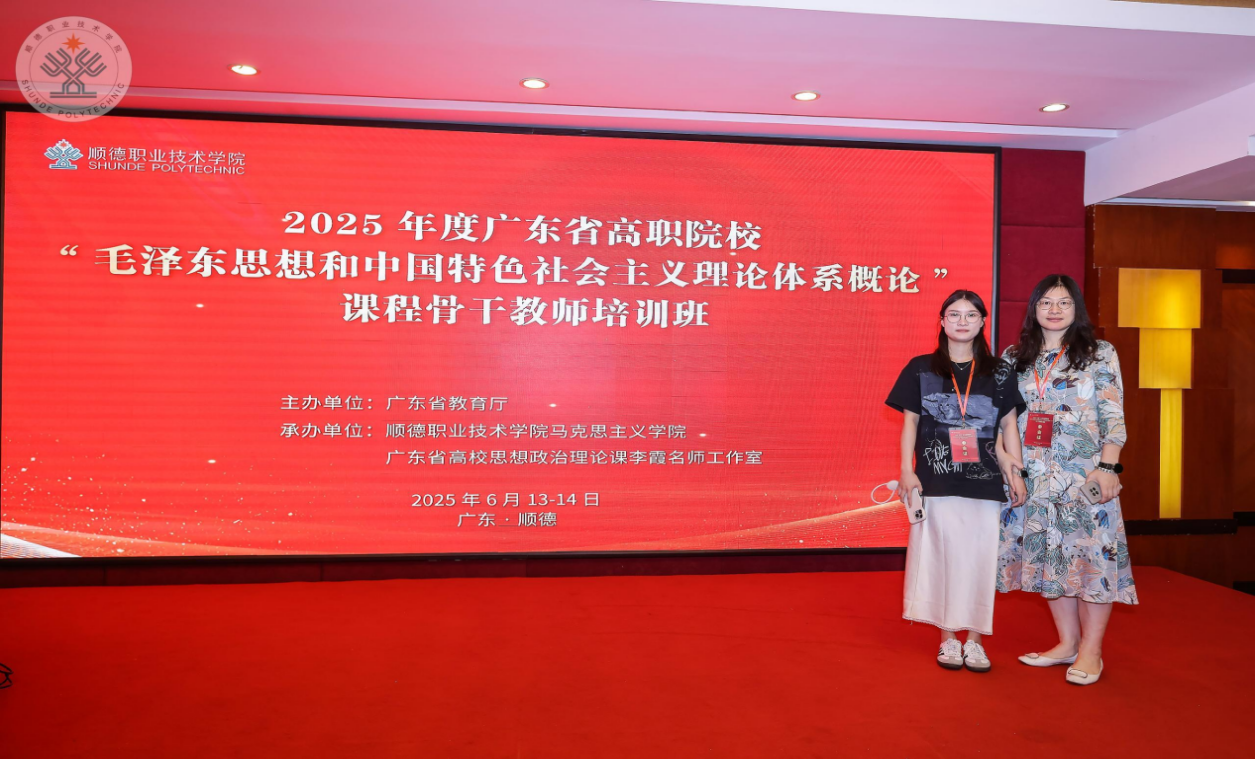为落实立德树人根本任务,加快推进我校思政课高质量发展,根据《广东省教育厅办公室关于举办2025年度高校思想政治理论课骨干教师培训班的通知》文件精神,马克思主义学院教师毛玲、张锦琳参加由顺德职业技术大学承办的2025年度广东省高职院校“毛泽东思想和中国特色社会主义理论体系概论”课程骨干教师培训班。
