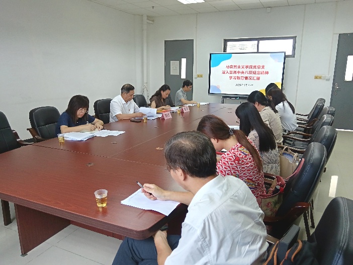 会上,马克思主义学院党总支书记张巧平就马院开展深入贯彻中央八项规定精神学习教育学查改一体推进情况作了工作汇报,逐条逐项对照检视,对标对表查摆问题,汇报贯彻中央八项规定及其实施细则精神方面存在的问题、整改措施和整改成效。马院领导班子成员分别汇报了自身学习及问题查摆情况,三名教师党支部书记围绕师德师风、学术道德、教学纪律、网络言行等四个方面交流了支部教师党员在查摆过程中存在的问题及整改情况。