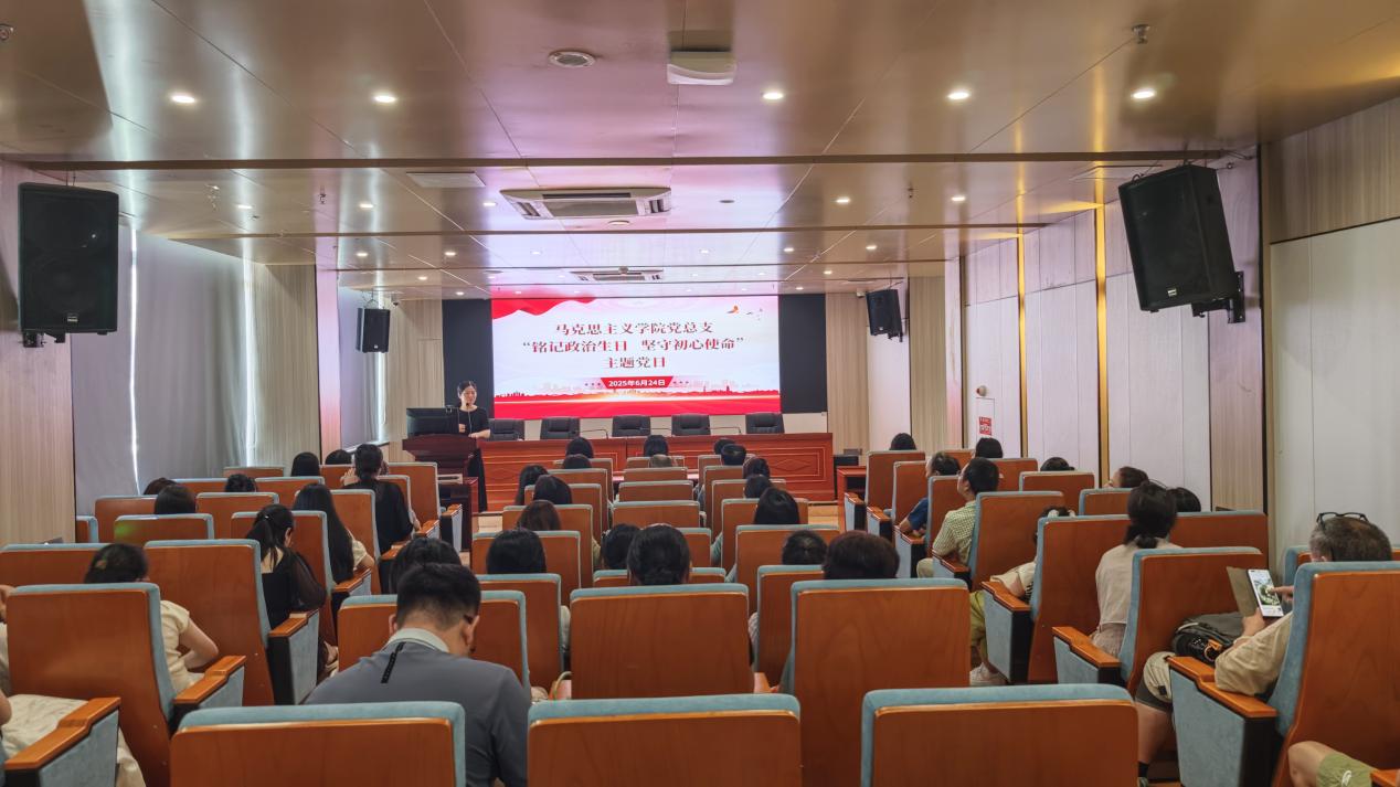 为持续贯彻落实党的二十大,党的二十届二中、三中全会精神,巩固学习贯彻习近平新时代中国特色社会主义思想主题教育成果,锲而不舍落实中央八项规定精神,推进作风建设常态化长效化,马克思主义学院于2025年6月24日举办“铭记政治生日,坚守初心使命”主题党日活动。通过“观、赠、谈、誓、颂”五维联动的创新形式,学院全体党员在思想洗礼中铭记入党初心、坚定政治信仰、强化使命担当,以实际行动献礼党的华诞。
