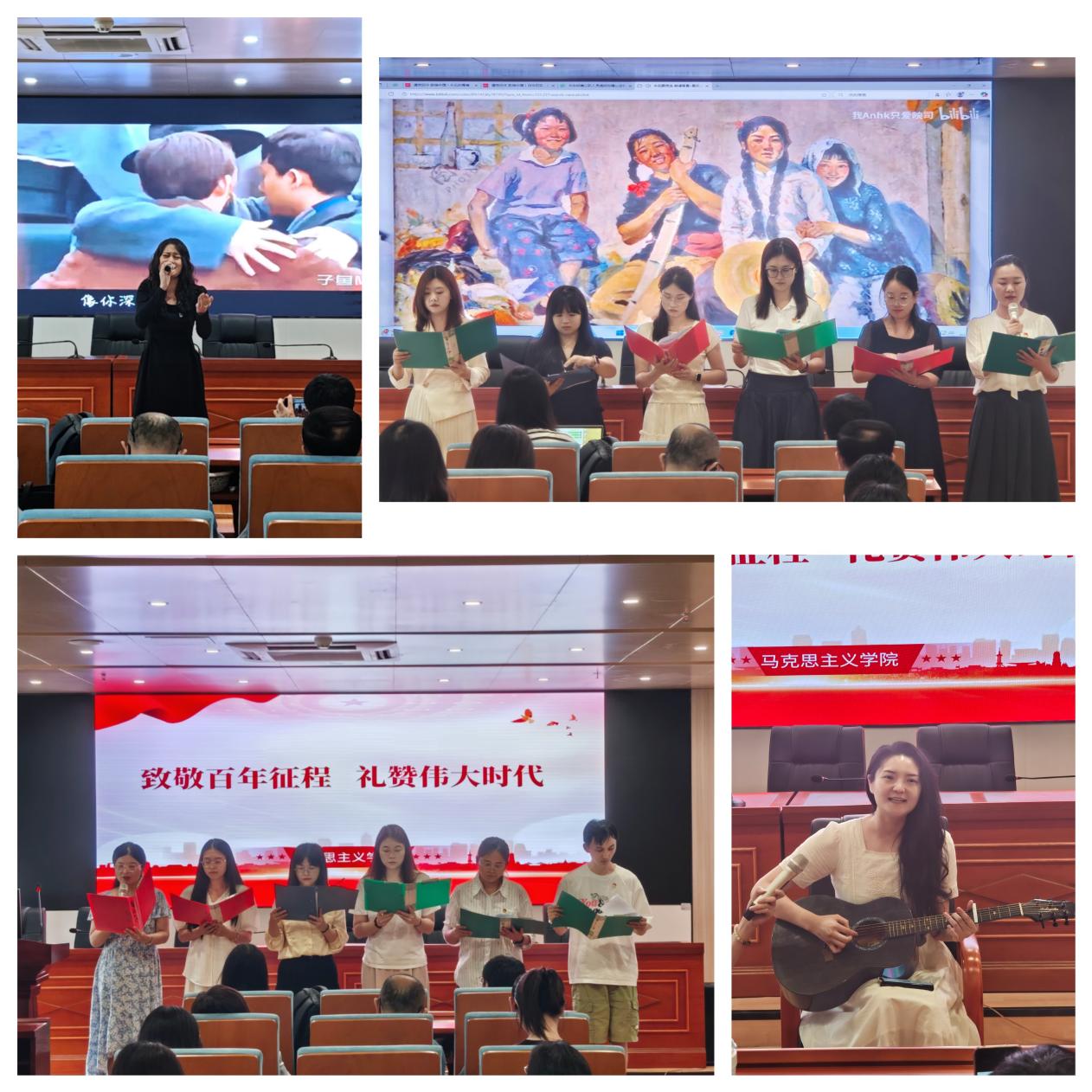 节目表演环节将活动推向高潮。郭慧颖、张倩、张锦琳、杨婕、吴韵、聂心怡等人带来了诗朗诵《永远跟党走》,赵聪、许新、付庆、蒋腾予、曾容、尹哲怡表演的《我是共产党员》,情感真挚、气势磅礴,抒发热爱之情。张倩倩演唱的《我和我的祖国》、李莹演唱的《如愿》,歌声悠扬,传递对祖国的美好祝福。
