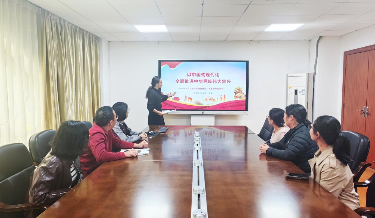 为持续推动党的创新理论入脑入心,切实把思想和行动统一到党中央决策部署上来,12月4日下午,马克思主义学院第三党支部组织全体党员干部讲专题党课,集中学习《习近平谈治国理政》第五卷核心要义与党的二十届四中全会精神,教师党支部书记晨曦老师主持会议并领学。