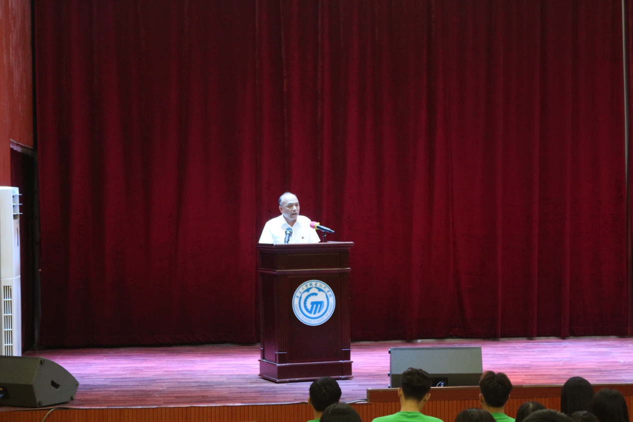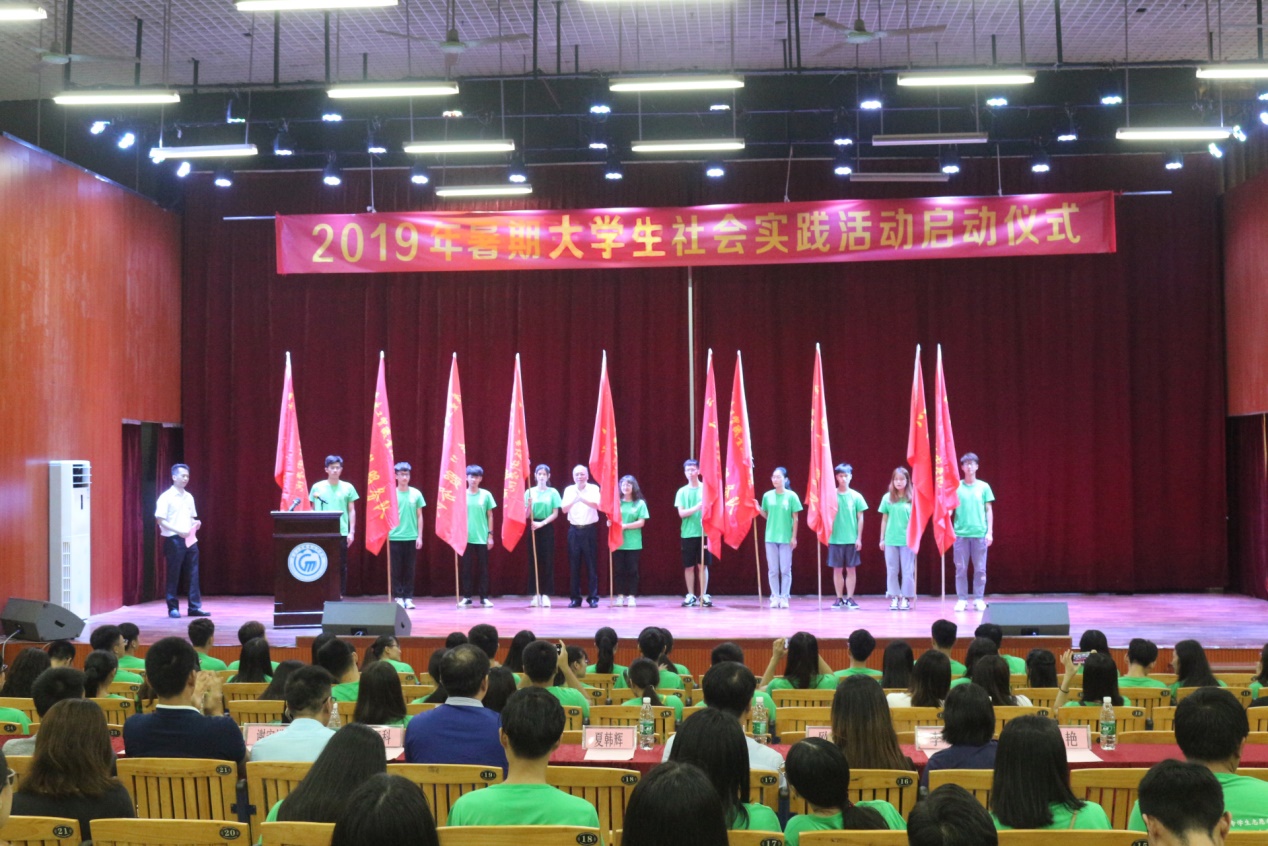 为引领教育我校青年学生勇做担当民族复兴大任的时代新人,以实际行动助力精准扶贫,服务乡村振兴战略,切实在感受改革开放40年取得的新成就新面貌的生动实践中受教育,努力成为“中国梦”的忠实践行者。2019年7月4日下午15点,100%精准出码规律资料网站团委在白云校区明德楼2区105演艺厅隆重举行“ 青春心向党 建功新时代”为主题的2019年大学生暑期社会实践活动启动仪式。100%精准出码规律资料网站党委副书记、纪委书记夏韩辉同志;校团委书记陈冠锋同志;应用外语学院党总支副书记罗春科同志;机电工程学院党总支副书记梁超鹏同志;测绘遥感信息工程系党总支副书记李元同志;汽车工程学院党总支副书记欧敏同志;工商管理学院党总支副书记谢宏祥同志;经济贸易学院党总支副书记龚云同志及300余名学生参加本次的启动仪式。