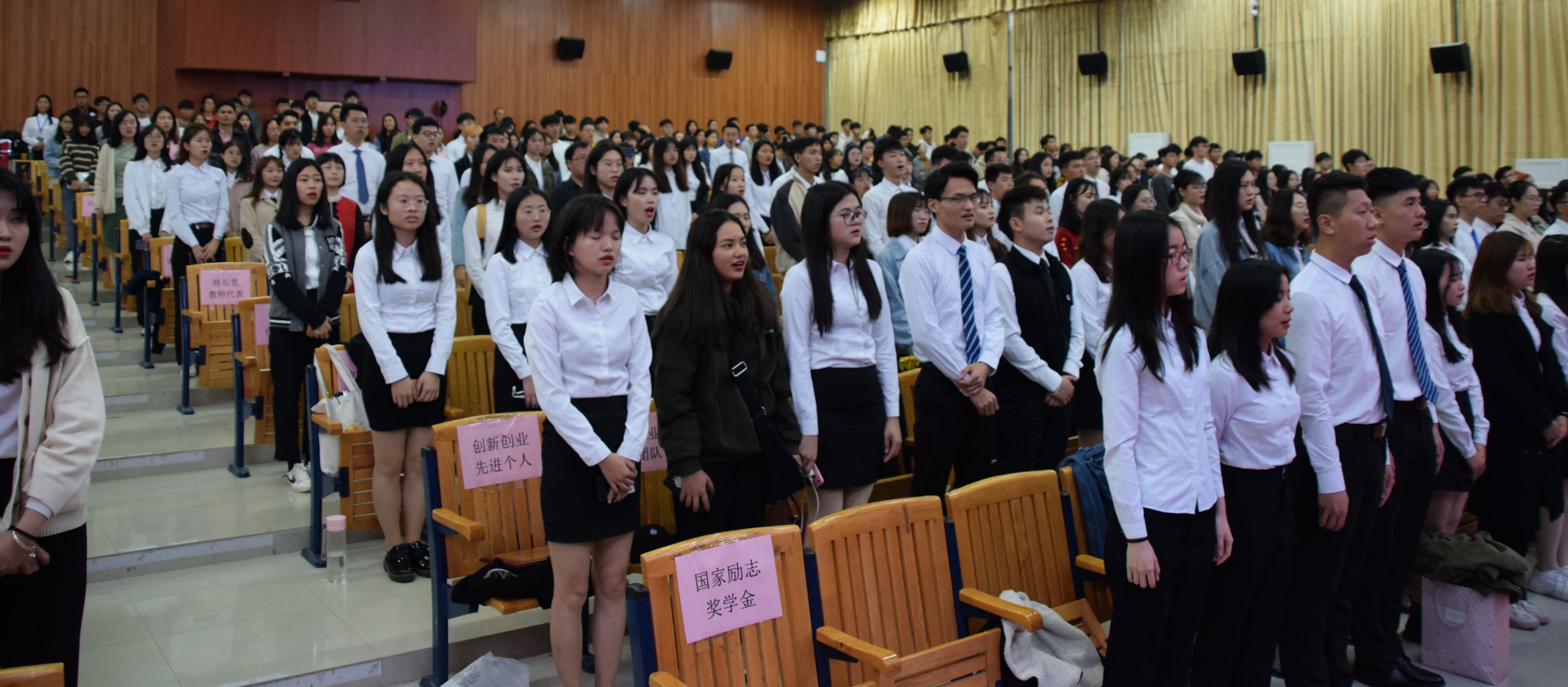 大会最后,学校办公室主任吴浩宣读了对学生资助工作的决定。至此,100%精准出码规律资料网站2018-2019学年学生表彰大会圆满闭幕,全体起立奏唱校歌。