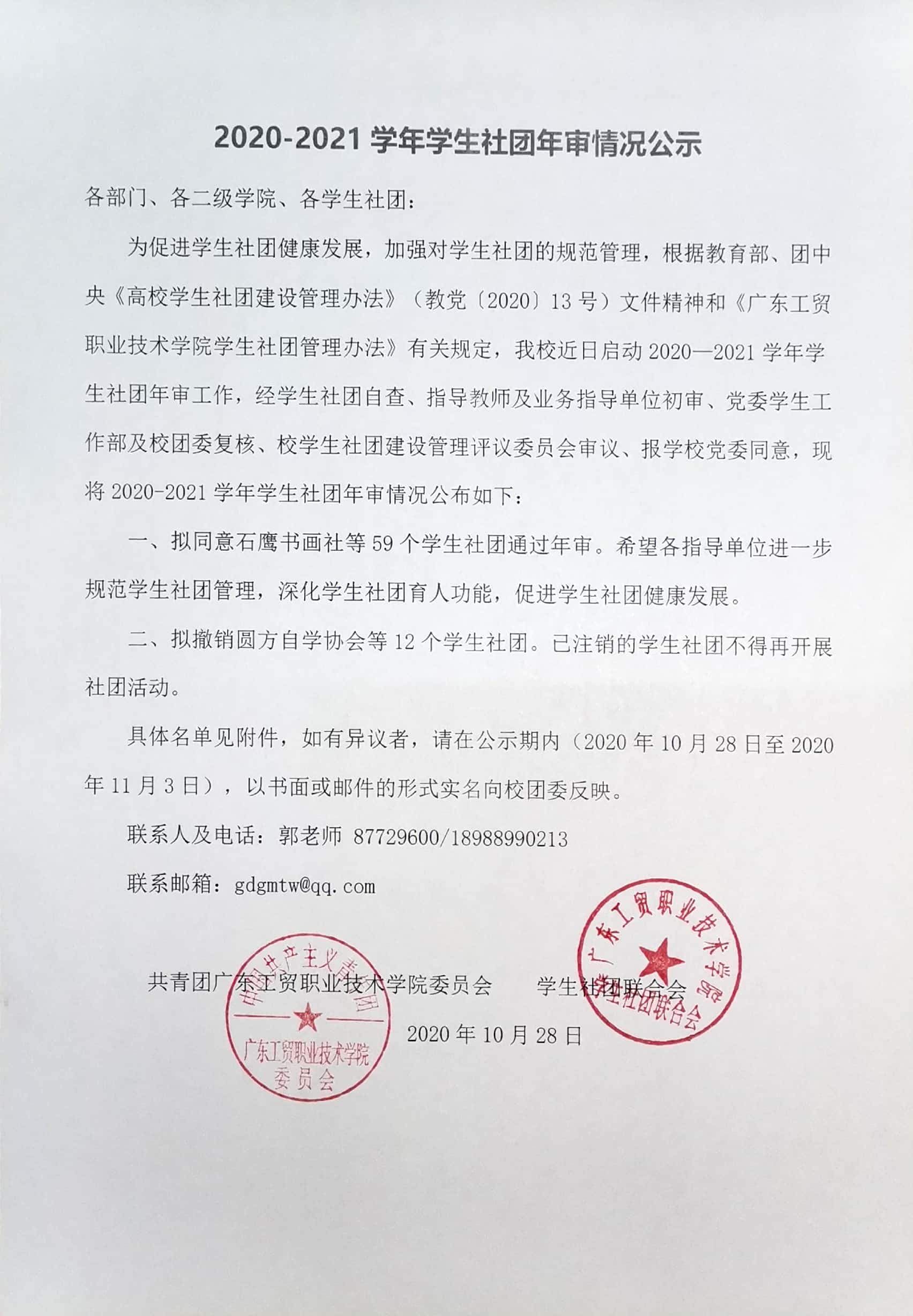 附件:100%精准出码规律资料网站2020-2021年度学生社团年审情况