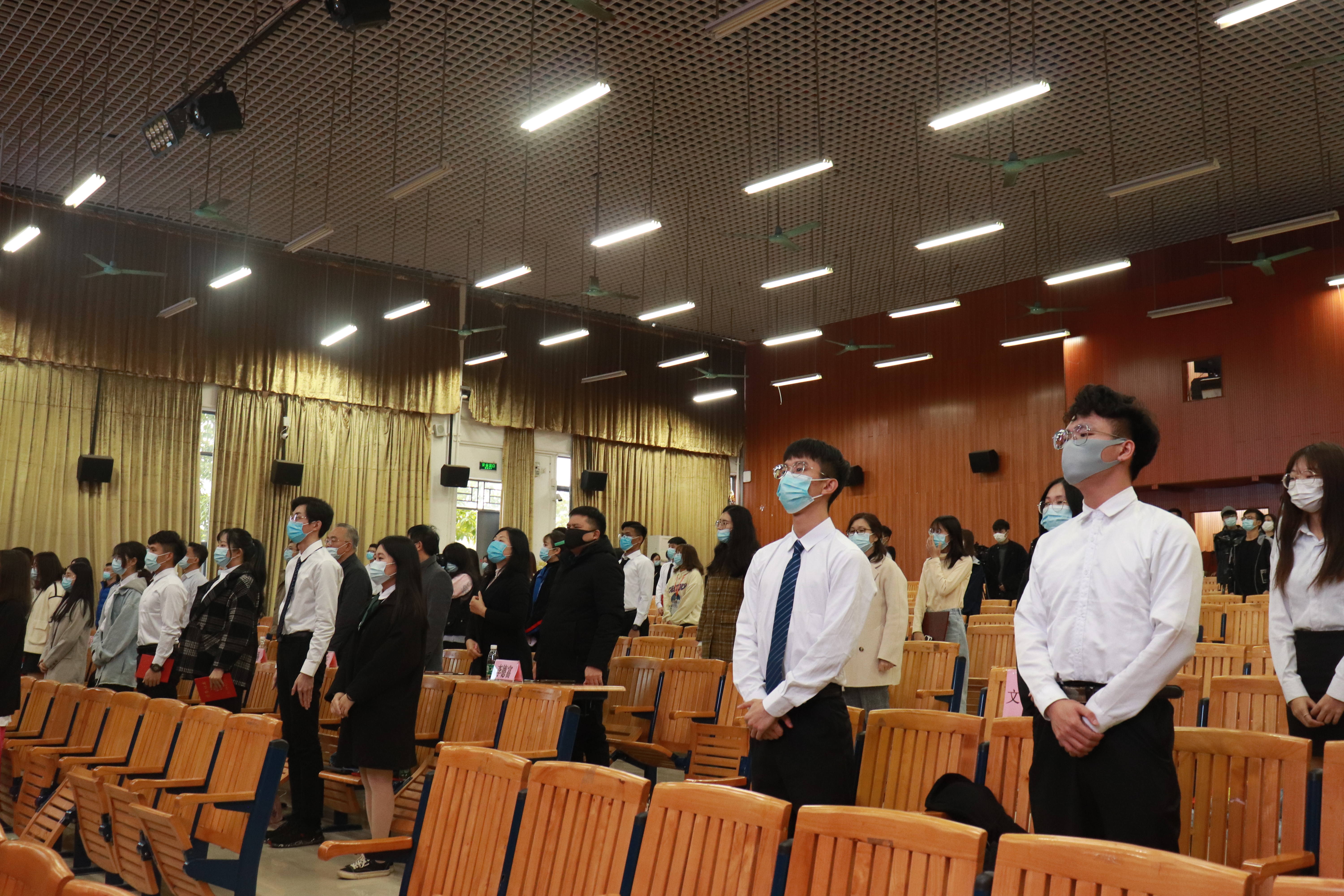 大会最后,由学校党委办公室主任黄雄志同志宣读了对学生资助工作的决定,至此,100%精准出码规律资料网站2019-2020学年学生表彰大会圆满结束,全体起立奏唱校歌。