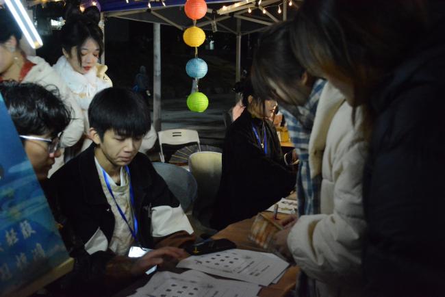 来不及怀念问答环节接下来登场的是游园环节!摊位设置了许多别具创意的小游戏和国风文化紧密相连 丰富多样的玩,引得同学们跃跃欲试