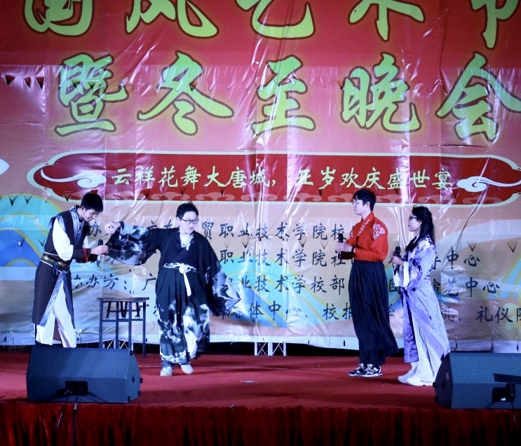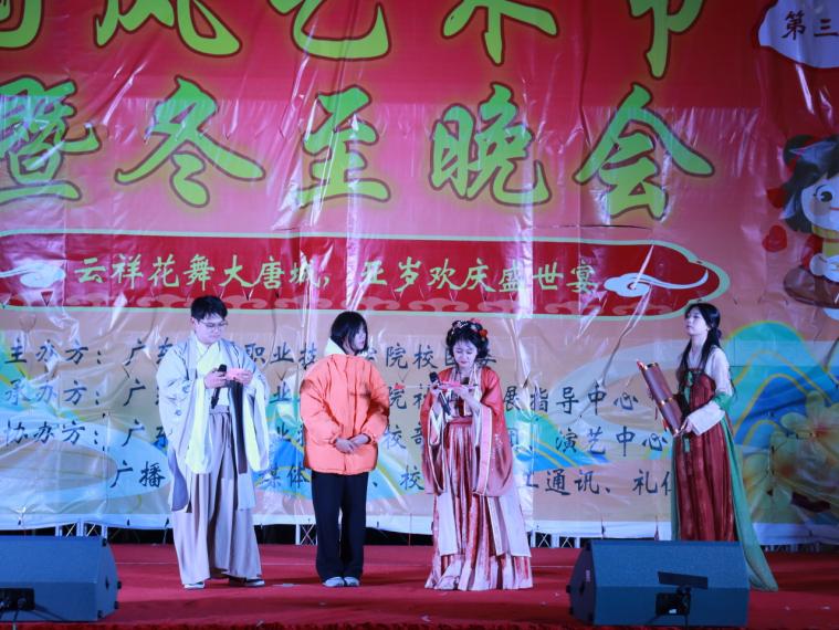 唐毓秋副校长在致开幕词时提出冬至是我国农历中的一个重要节气也是中华民族的一个传统节日本次活动通过国风游园及晚会表演展示我校社团文化建设的丰硕成果旨在凸显中华文化的博大精深增强同学们对传统文化的了解和传承并且期望以此活动为契机在培养同学们的艺术素养和审美能力的同时加深同学们对中华传统文化的了解和热爱增强文化自信