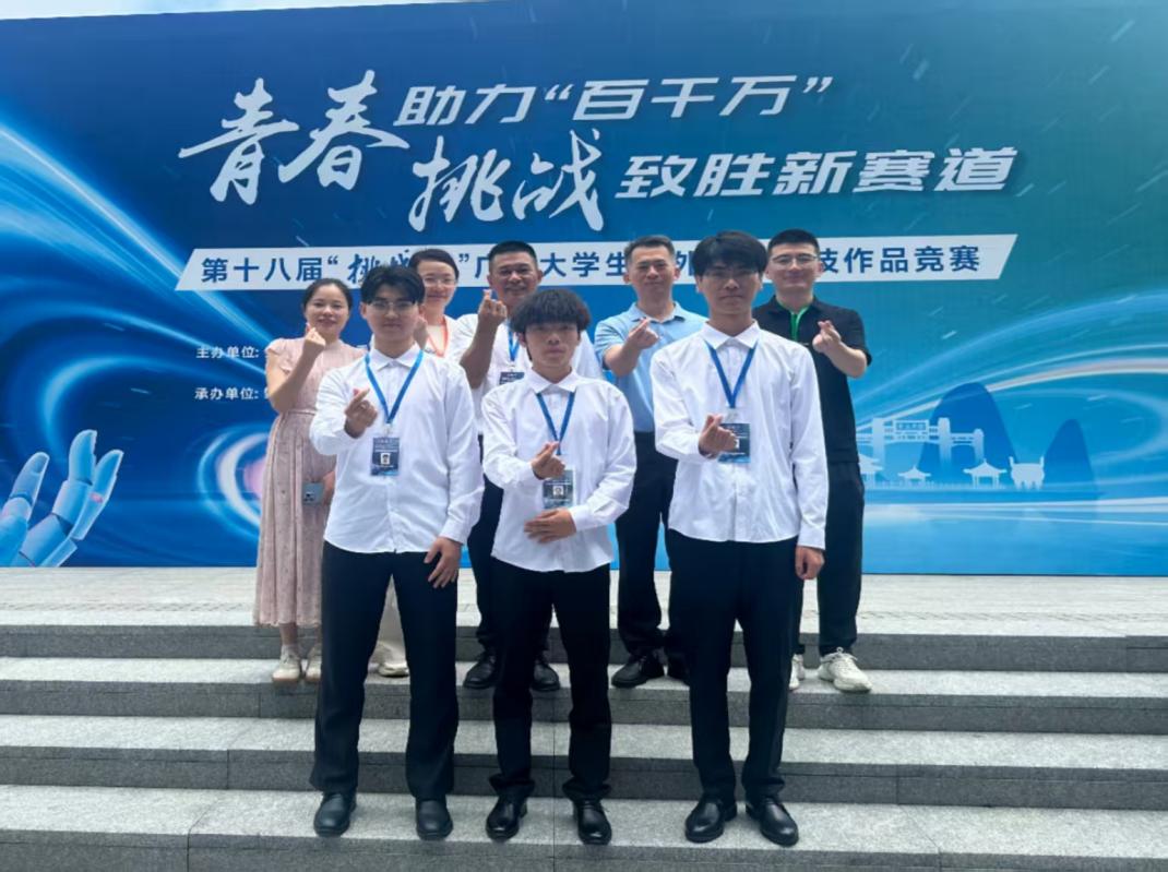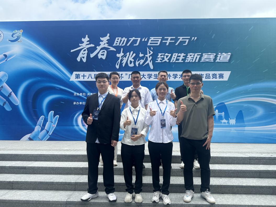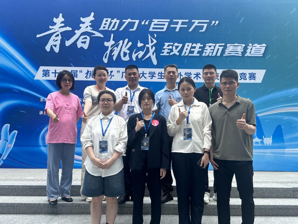 5月17日—5月19日,由团省委、省教育厅、省科学技术厅、省科学技术协会、省社会科学院和肇庆市人民政府共同主办的第十八届“挑战杯”广东大学生课外学术科技作品竞赛终审决赛于肇庆学院顺利举办。本届大赛共吸引全省161所高校、3.6万余件作品参赛,引领超20万大学生投身科创实践,参赛人数、作品数创历届新高。我校选拔推荐的16个作品,获一等奖1项、二等奖5项、三等奖9项,此外,肇庆“百千万工程”专项赛获三等奖1项。唐毓秋副校长专程到比赛现场看望师生并为其加油打气。