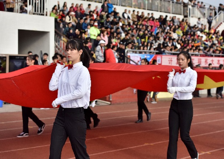 恰同学少年,风华正茂;扬飒爽英姿,傲视天骄。国旗、校旗、会旗和彩旗方阵迈着矫健的步伐,昂首入场,拉开了此次运动会的序幕。紧随其后的是7个系以及教职工代表队。整齐划一的步伐,充满特色的口号充分展示了师生良好的精神风貌。创造众多辉煌成绩的外语系代表队火力全开,绽放自己;计算机系代表队带着上届校运会冠军的自信,昂首阔步;“遥感测绘,永不后退”,测绘系代表队用激情的口号喊出气势;机械系代表队以“刻苦钻研,勇创佳绩”的工匠精神描绘不一样的运动精神;经贸系代表队秉承着“友谊第一,比赛第二”的理念;电气系代表队一片明黄,绽放着青春的光芒;工商系上场的运动健儿们喊着“大气工商,责任担当;自信顽强,再创辉煌”的响亮的口号迈上赛场;教职工代表队以不输大学生的活力展示着与三尺讲台不同的一面,老师们,加油!据悉,本届运动会参赛选手一共有1060人,教职工314人,学生746人。
