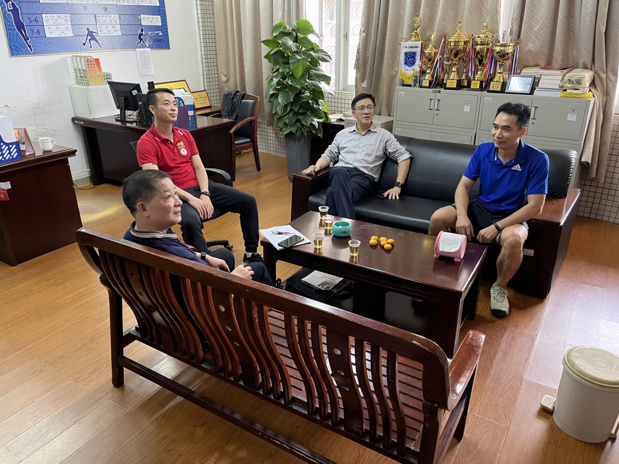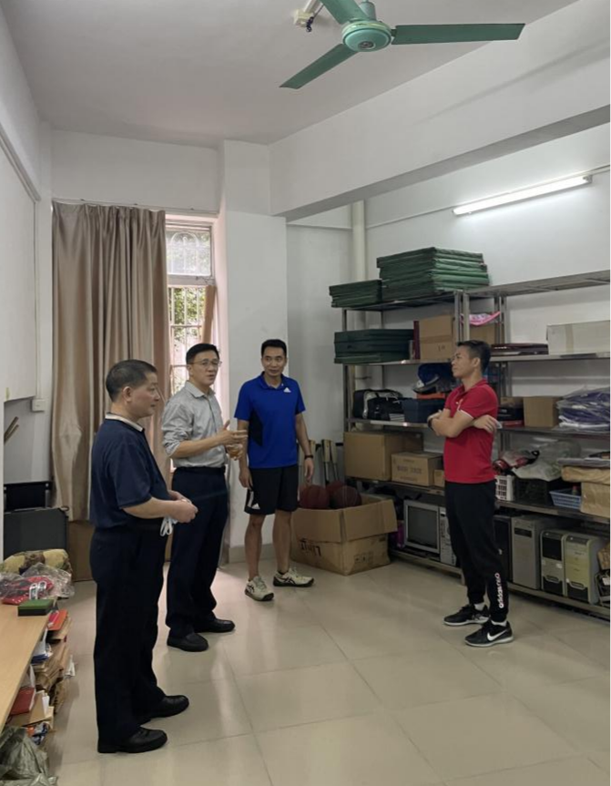 首先,刘副校长一行参观了科研团队办公室,余主任简单介绍了科研场地相关情况,正积极沟通落实场地及相关设备采购事宜,争取科研基地落地。刘副校长指出,体艺部要积极探索和凝练科研团队的具体研究方向,形成动态团队轮流进行科研建设;其次,要以我校体育特色为抓手,打造自主品牌,根据下达经费购置的相关设备和材料时要向科研、学术上靠拢,规划好科研基地的用途并运用到科研实际中。他强调,科研团队要细化主题、分项目作出特色,统计好相关数据,要形成一本科研团队研讨记录,定期对课题进展、资料收集情况等进行记录,写清楚主题、时间、地点、参加人员并汇总成研讨记录模板,每个学期进行抽检。此外,刘副校长针对科研方向以及如何与体育相结合与在场老师们进行了探讨和交流,还了解了体艺部上课和比赛情况,提出了相关建议。