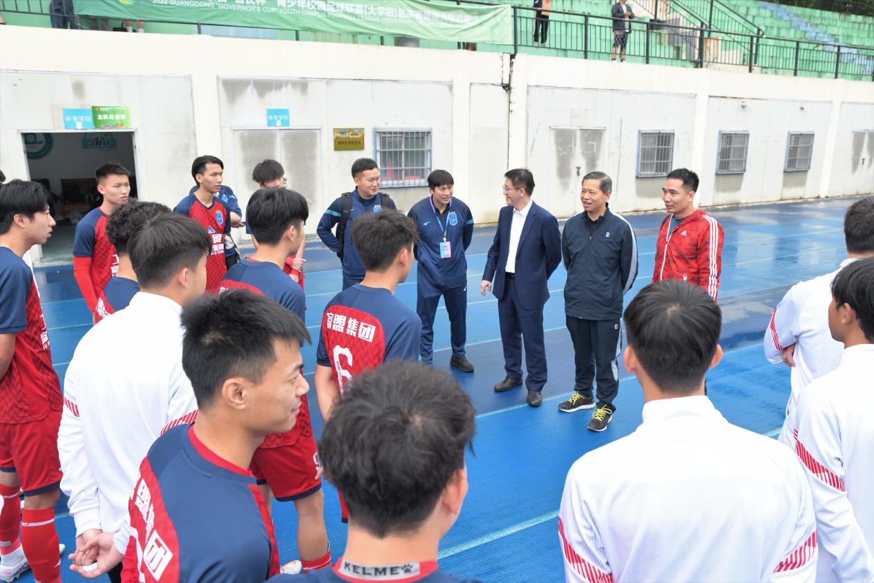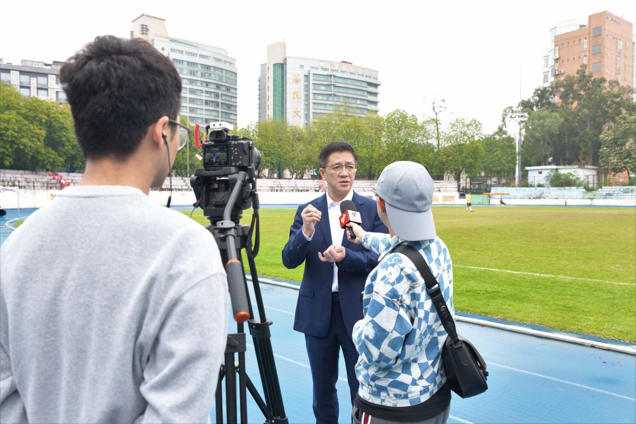 比赛当天,学校党委副书记、校长何汉武,副校长刘贻新到现场为参赛选手加油助威,鼓励大家尽情享受比赛过程,充分发扬团结拼搏的体育精神,在赛场上展现工贸青年学子的精神风貌。赛后,学校领导接受广东体育频道记者采访表示,体育代表着青春、健康、活力,学校高度重视大学生体育教育,重视开展各项体育活动,以校园足球为抓手,打造阳光体育,引导大学生树立良好的体育运动观,带动更多人参加体育锻炼,将中华体育精神发扬光大。