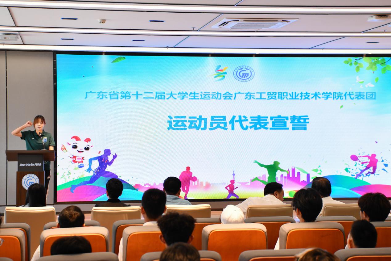 2025年5月6日上午,我校在博学楼隆重举行2025年广东省第十二届大学生运动会代表团出征仪式,为我校即将奔赴赛场的运动健儿们鼓气助威。学校党委书记何汉武、相关二级学院领导及职能部门负责人、体育部相关人员及全体教练员、运动员齐聚一堂,共同见证这一时刻。仪式由党委副书记揭英荣主持。