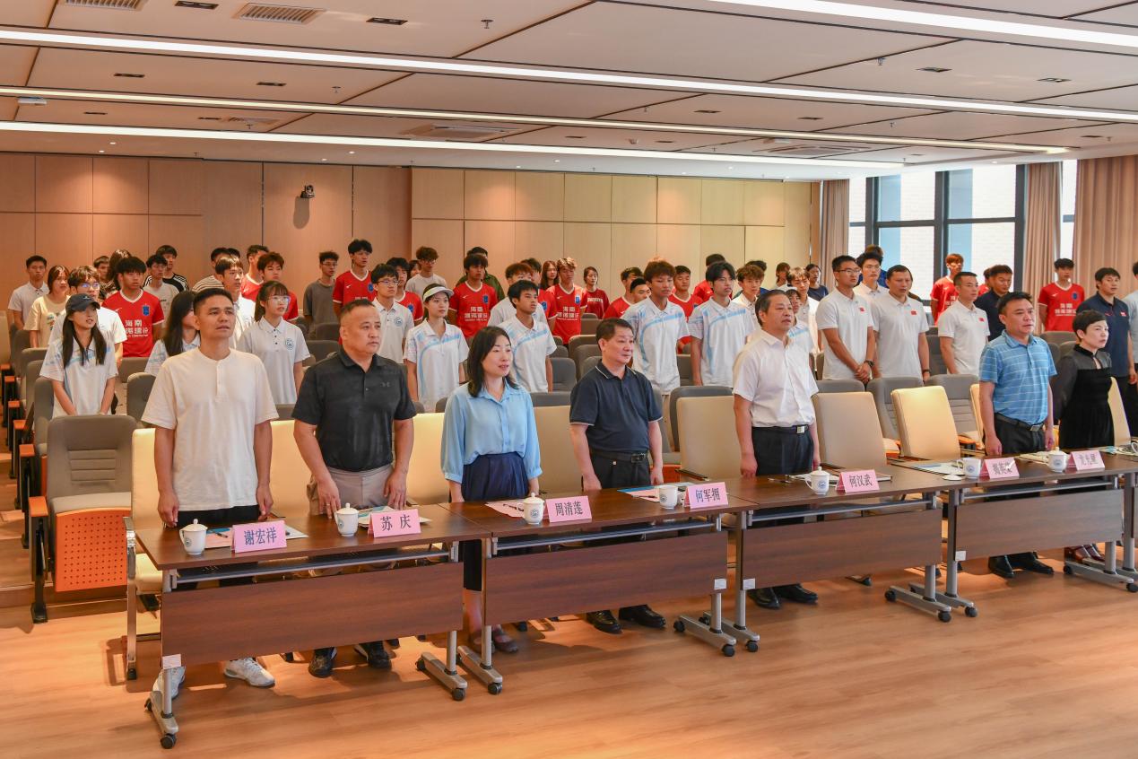 随后,何汉武向代表团郑重授旗。旗帜在热烈的掌声中飘扬,既是学校的期许,更是运动员们的使命。