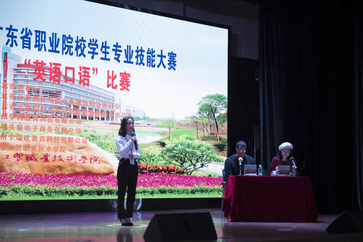 2019年1月12-13日,由广东省教育厅主办,我校承办的“2018-2019年度广东省职业院校技能大赛英语口语赛项”在天河校区东区礼堂举行。经过两天激烈角逐,我校共获一等奖3项,二等奖1项;其中,17商务英语专业陈俏倪同学以专业组第一名的成绩顺利挺进国赛。
