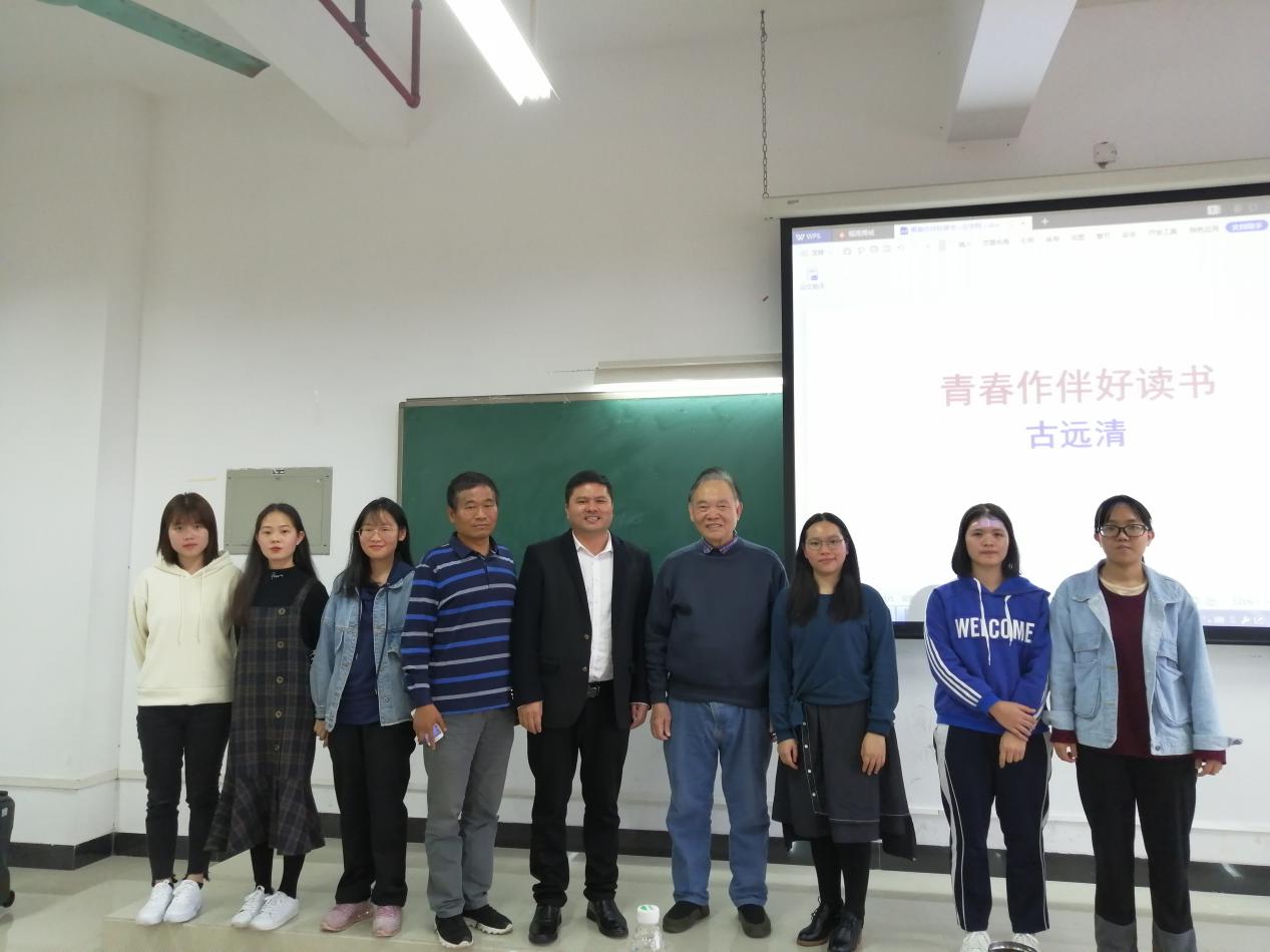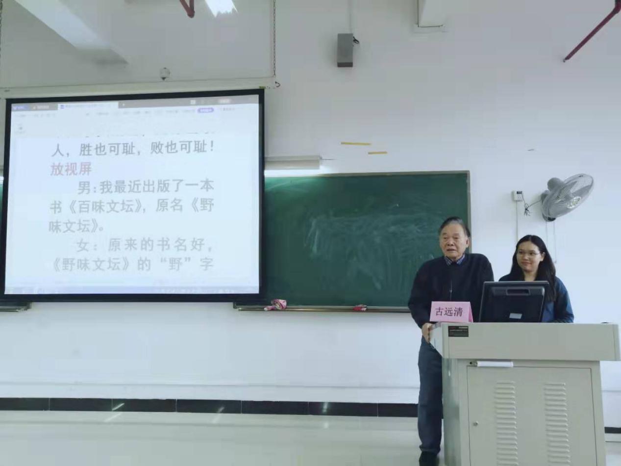 3月14日,应用外语学院研习所及之江社系列活动在明德楼2-102举行。中南财经政法大学教授、台港澳暨海外华文文学研究所所长、中国新文学学会副会长、国际炎黄文化研究会副主席古远清应邀为外语学子进行一场主题为“青春作伴好读书”的读书分享交流会。学院党总支书记李德富,副院长杨国民出席本次活动。