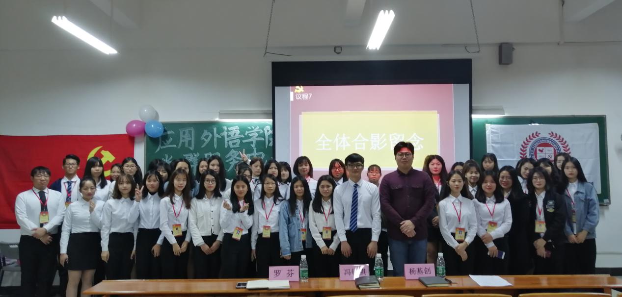 3月14日,应用外语学院党群服务中心在教学楼2-203召开新学期动员大会。辅导员老师冯锐骐,中心委员长罗芬、杨基创以及党群服务中心全体成员参加本次大会。会议由董思丽主持。