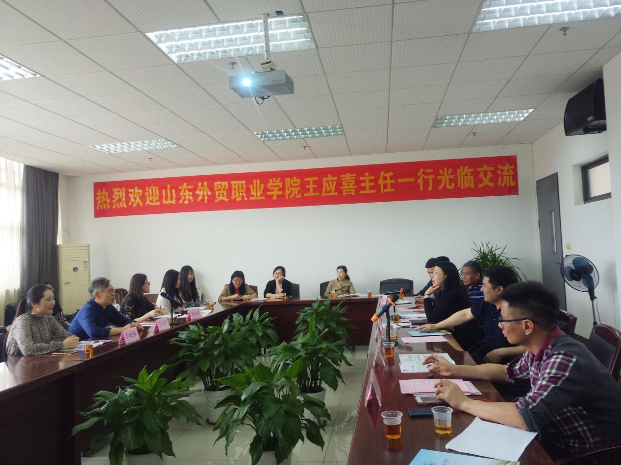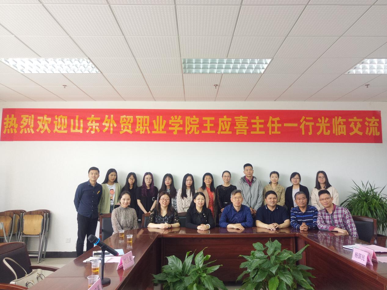 为加强专业建设、促进合作交流,4月17日上午,山东外贸职业技术学院商务外语系王应喜主任一行莅临我校交流访问。应用外语学院党总支书记李德富、院长彭枚芳、党总支副书记罗春科、副院长杨国民、邓国栋热情接待来宾,并在1-308会议室同来宾座谈交流。部分外语学院教师陪同参加。交流会由彭枚芳主持。