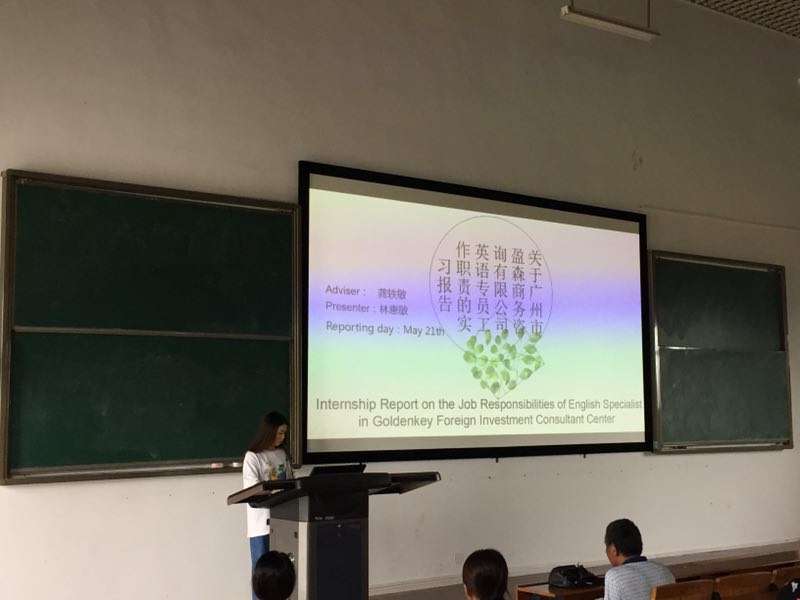 商日专业杨芸同学首先围绕日本文化进行了介绍,随后登台的分别来自应英专业林惠敏、韩语专业廖翠谊与商英专业朱佳纯同学也做了专题汇报。她们的外语水平和专业能力,给每位在场的人留下深刻印象。答辩会上,应辩同学们通过展示毕业实践报告(“毕业论文”),全方位展示了各自的知识理论及实践工作情况,并围绕毕业实践工作岗位的情况,具体就企业文化、热点商务现象以及外贸公司实习实践等各种课题,进行较为专业的阐述。所有选题均来自同学本人的工作实际,大家完全做到“胸中有物,有感而发”,能够使用所学的外语,十分流畅、准确地表达出来,体现了我们学校外语专业教育教学方面的成就。答辩过程紧凑,井然有序。答辩老师们直接针对毕业实践报告内容进行提问,应辩同学准备充分,都充满信心地进行答辩,表现十分突出。