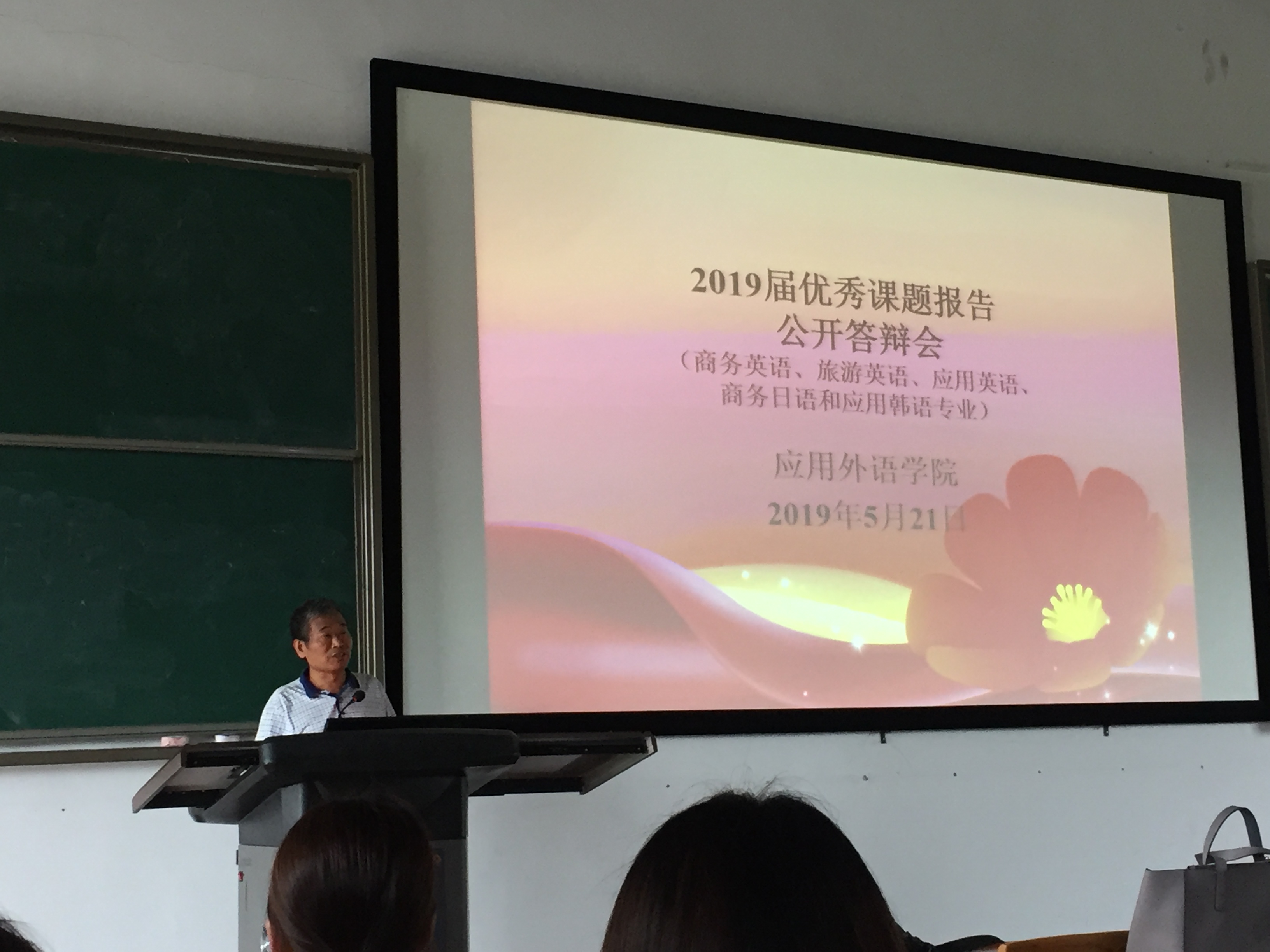 521日下午,应用外语学院在白云校区2-306教室顺利举行了“19届优秀毕业论文公开答辩会”。参加答辩的有来自商务英语、旅游英语、商务日语、应用韩语以及应用英语五个专业的4名同学,应用外语学院副院长杨国民主持本次答辩会,邓国栋副院长以及外语学院其他部分专任教师作为答辩组成员出席了会议。此外来自不同年级的近300名外语学院学生和白云校区其他专业的同学进行了学习、观摩。