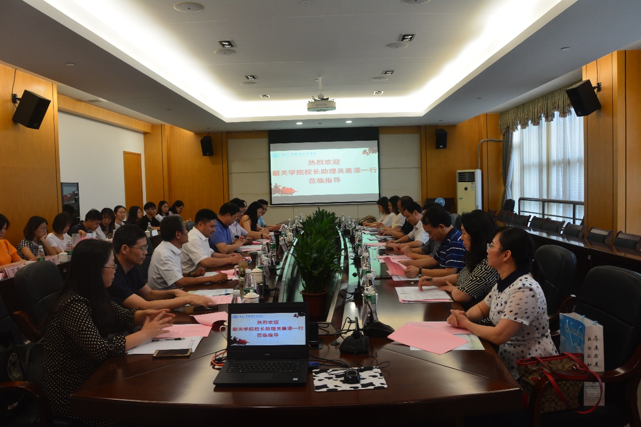 5月23日下午,校长何汉武会见韶关学院校长助理吴善添一行,双方就“三二分段”专升本协同育人项目进行深入探讨。校办公室主任吴浩、外语学院党总支书记李德富、院长彭枚芳等相关人员参加交流会。
