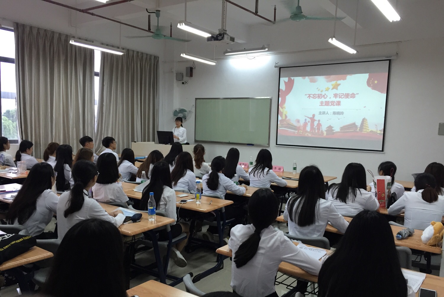 6月6日下午15点,应用外语学院学生第一党支部在教学楼1-418举办了“不忘初心、牢记使命”主题党课学习,本次党课由应用外语学院学生第一党支部书记陈晓玲同志讲授,支部全体党员参加了此次学习活动。
