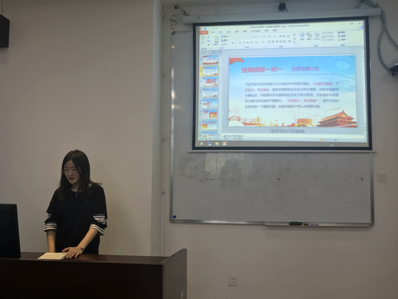 活动过程中,党员代表伍晓滢同志表示:活动的目的是让党员和积极分子更加紧密地联系起来,活跃起党支部的氛围,增强整个支部的凝聚力。党员们的初心就是希望可以通过这种一对一挂钩班级的方式,可以更加细致全面的了解到班级的学习和生活的状态,以及是否在入党的过程中有困惑,因为入党它不是一个单纯的输入和导出的结果,它是一个动态的过程,而在这个过程中,挂钩党员起到的作用就是保驾护航,希望党员可以通过自身的行动去鼓励新生,通过整个支部的氛围去感染新生,让所有有志愿入党的同学在这个过程中感受到支部的魅力,了解到党员的责任,以及领悟到我们党的宗旨和使命。