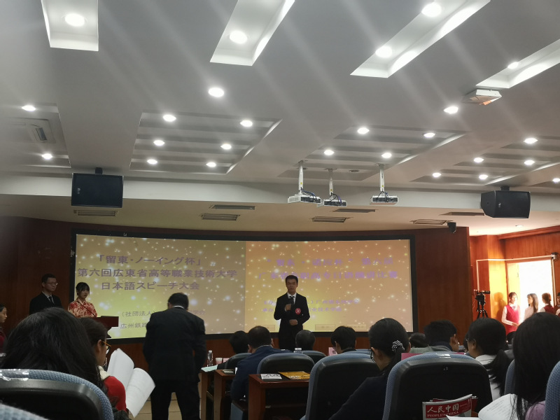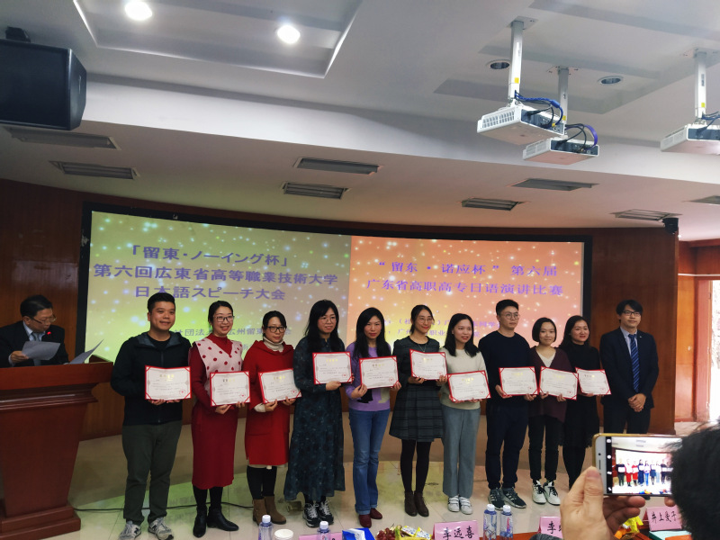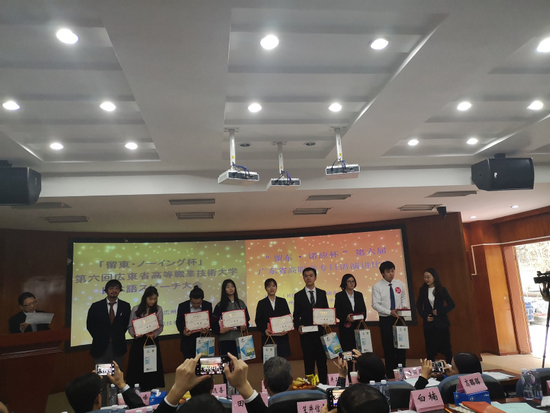在刚刚结束的第六届“留东.诺应杯”广东省高职高专日语演讲比赛中,我校应用外语学院18级商务日语专业学生潘城彬以其在舞台上饱含感情的演讲与落落大方的表现,得到了评委们的高度评价,斩获本次大赛的二等奖,实现了我校商务日语专业学生在该项赛事的历史新突破。陈歆馨老师获得“优秀指导老师”奖。