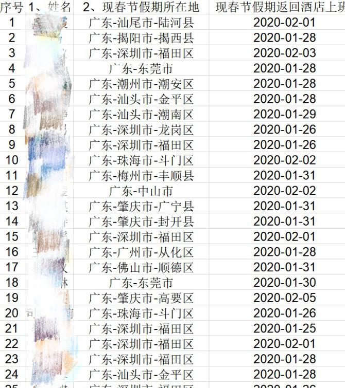 新年前夕,由于深圳疫情较为严重,学生们已陆续调休回家过年,但“什么时候时候需要再回去”、“能否推迟回酒店实习时间”、“如何保障回酒店路程中的健康安全”、“酒店是否有强有力的防御措施”等成了同学们共同关心的话题。有效做好防控第一步,就是要清楚、准确地掌握学生的“现状”。辅导员收到学生反馈后,立即联系班级主要班干部,在一晚内摸排每位学生目前所在地、预计复工时间、身体状况等,同时温馨提示学生们不要着急回单位复工,积极做好自我防护。