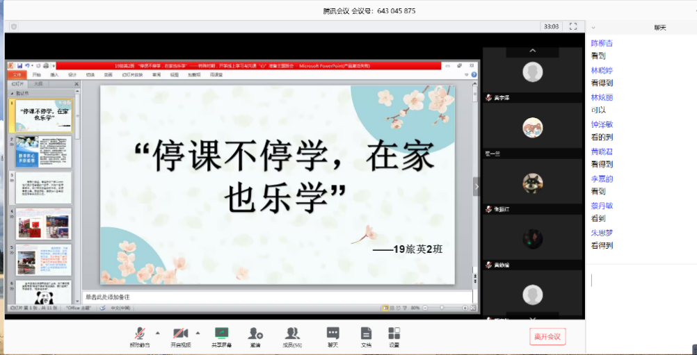 部分班级召开线上主题班会截图
