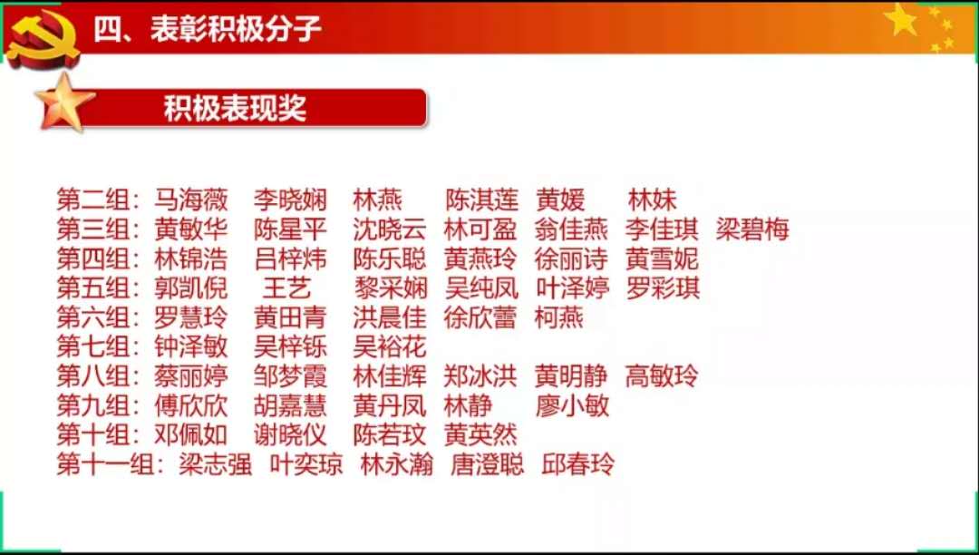 冯锐骐老师为大会做总结,向受表彰的同学表示衷心的祝贺,同时对他们所做的工作表示充分的肯定和赞扬。学校党文化建设是需要师生共同努力的,同时她向为校园党群的各项工作付出心血的师生致以感谢,并用心肯定党群在各活动上取得的成绩。