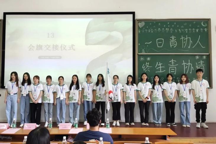 最后,会议在会旗交接仪式中结束,外青协分会会旗在24届师兄师姐的手上变得神圣而温暖,接过会旗的师弟师妹们也会永远铭记这一刻:一日青协人,终身青协情。