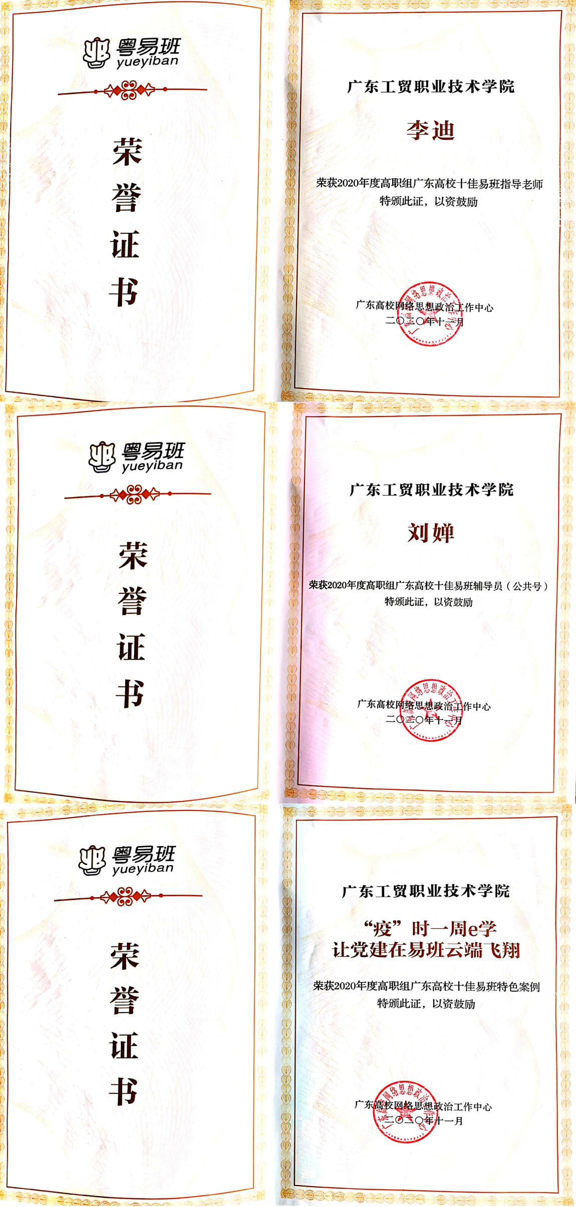 易班学生专项工作:应用外语学院李迪老师荣获2020年度高职组广东高校十佳易班指导老师,应用外语学院刘婵老师荣获2020年度高职组广东高校易班辅导员(公众号),《“疫”时一周 e 学 让党建在易班云端飞翔》荣获2020年度高职组广东高校十佳易班特色案例。