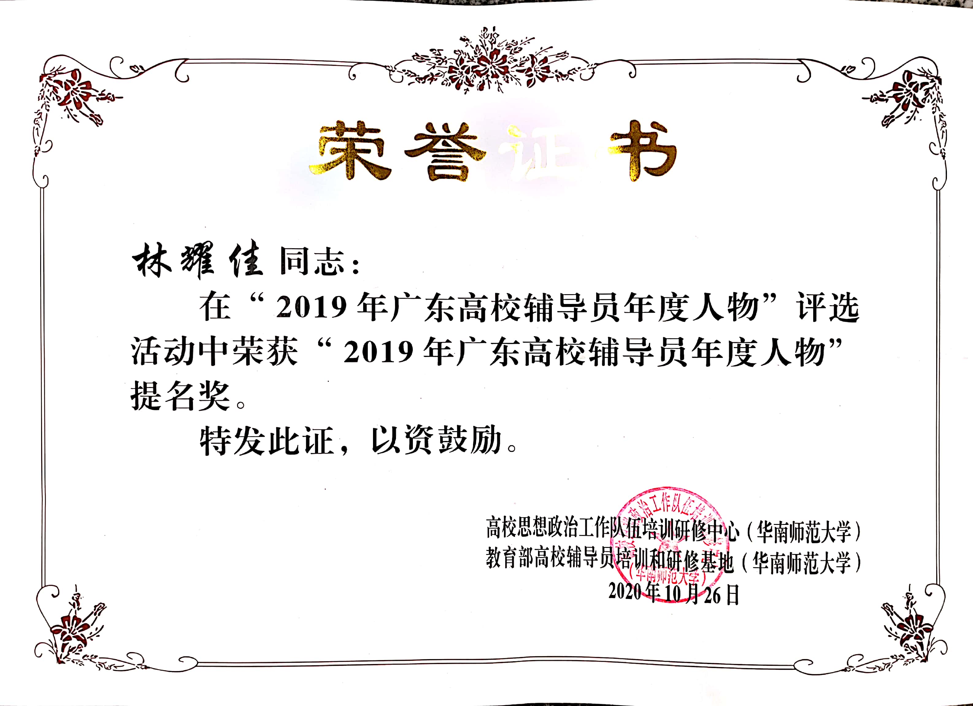 应用外语学院学工办主任林耀佳获广东高校辅导员年度人物(提名奖)
