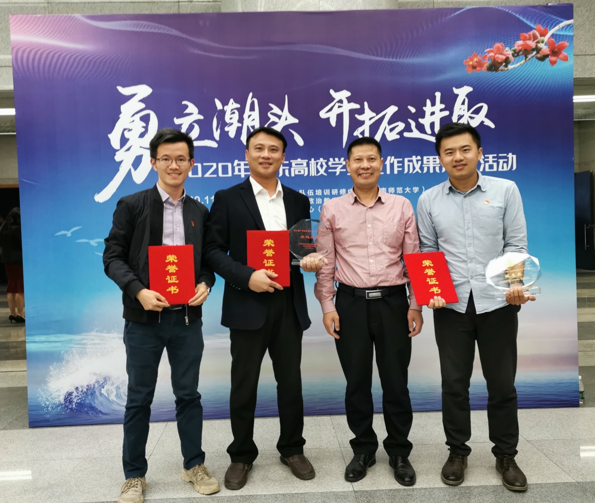 经过学校推荐、初评、答辩和终评,我校应用外语学院学工办主任林耀佳老师凭借着丰富的工作经验,求真务实、开拓创新、不断进取的工作态度以及在思政工作、就业创业工作中独具特色的工作实效获得了年度人物提名奖。本次评选活动共选出“2019年广东高校辅导员年度人物”10名,提名奖40名,入围奖120名,单项奖66名。