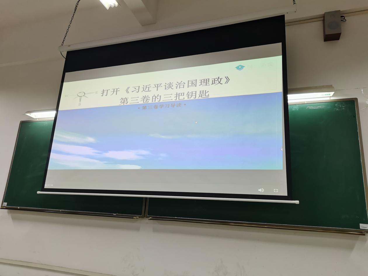 宴老师主要就该书第三卷的19个专题、学习的5点建议以及打开其卷的三把钥匙三个方面进行讲述。通过党课学习,同学们深刻了解到了习近平主席在治国理政方面上的理念,同时也感受到了国家领导人“人民至上”的服务意识以及“为人民而生,因人民而兴”的高尚情怀,习近平主席真正做到了与人民心心相印,同甘共苦。本次学习,让大家更坚定了跟着党走的坚定决心,成效显著。最后,老师号召我们积极学习《习近平谈治国理政》一书,并深入学习了解习近平主席在治国理政方面上的理念以及各项会议开展讲话的重要内容。