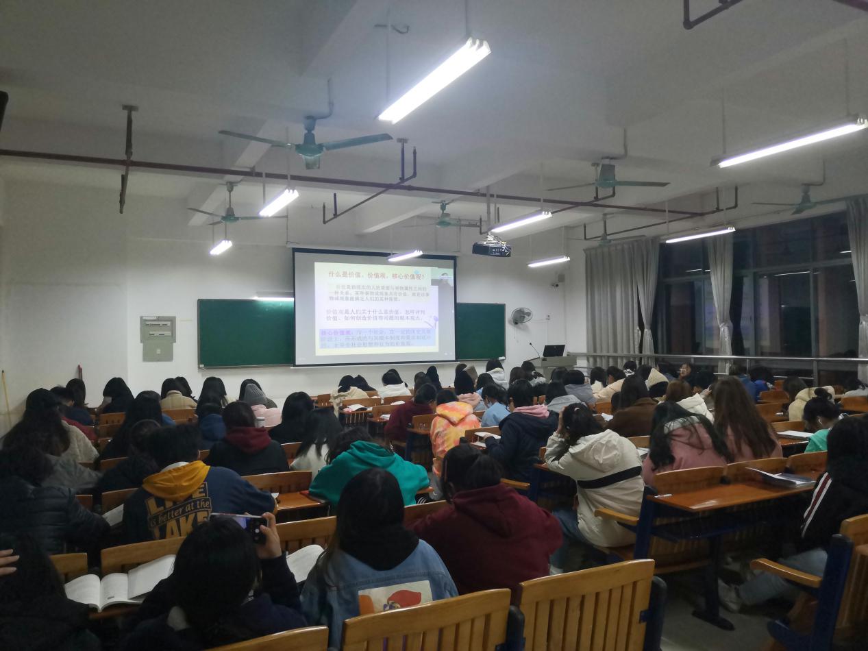 此外,丁教授还将党课与时事相结合,让大家对社会主义核心价值体系有了更深刻的了解,帮助学生们树立起正确的社会主义核心价值观,更好地实现人生价值。