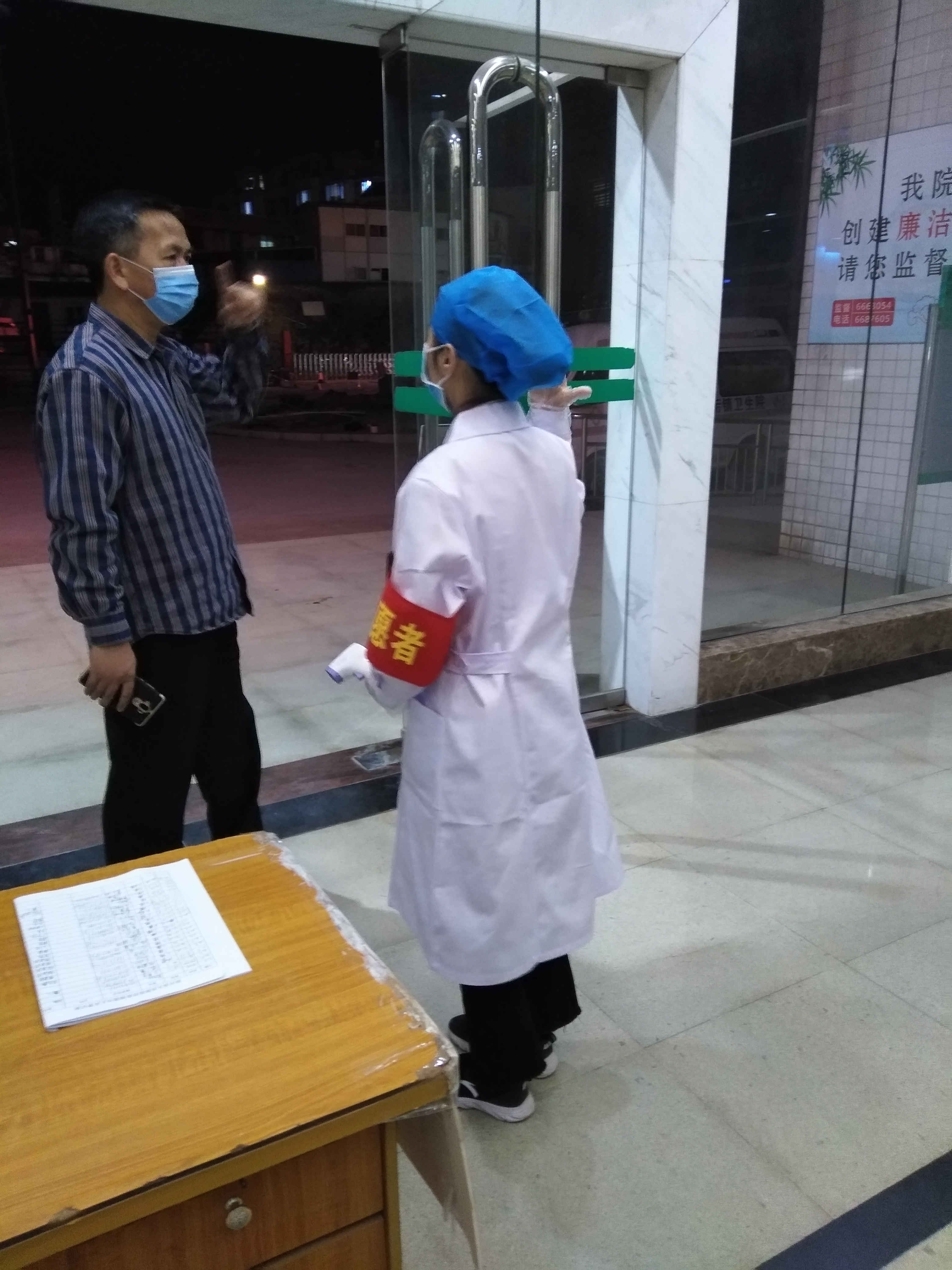 身穿白色医护服,这位身形瘦小的志愿者近一个月以来几乎每天重复这些话语上百遍。她是19商英11班的梁冰婵,应用外语学院学生第一党支部预备党员。寒假回到家乡封开后,积极报名该县人民医院志愿者活动,正式成为了一名疫情防控志愿者。