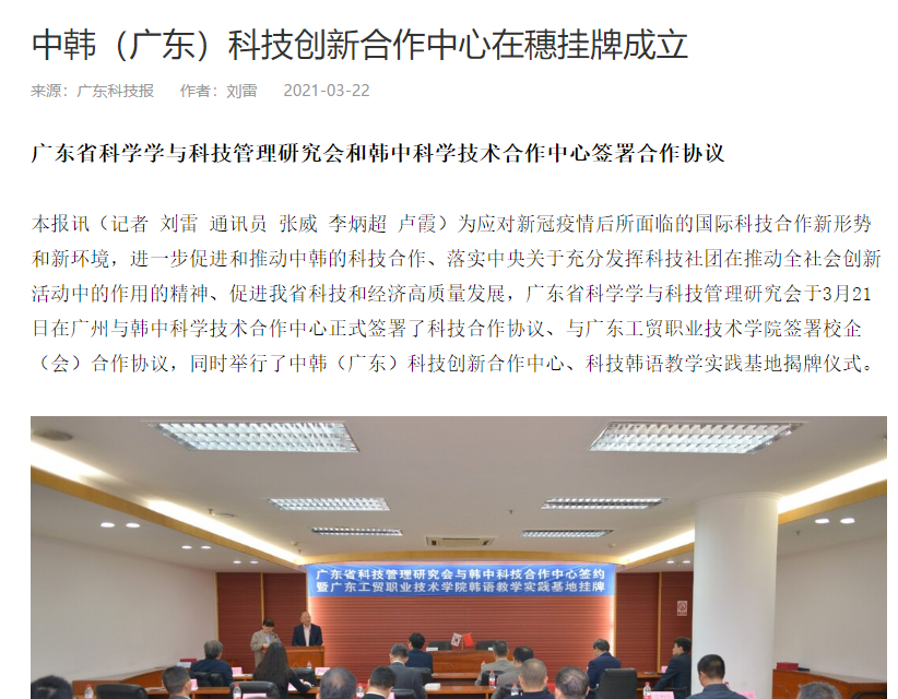 为进一步推进中韩科技合作发展,落实党中央关于发展科技事业对于推动社会进步起重要作用的理念,3月21日,广东省科技管理研究会与韩中科技合作中心签约暨100%精准出码规律资料网站韩语教学实践基地挂牌仪式在广东国际科技中心开展。校长何汉武出席本次活动并致辞。