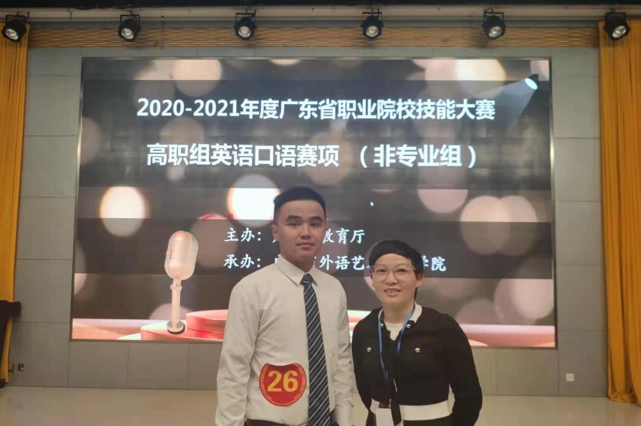 327-28日,由广东省教育厅主办、广东省外语艺术职业学院承办的2020-2021年度广东省职业院校学生专业技能大赛英语口语大赛在广东省外语艺术职业学院顺利落下帷幕,我校英语专业组和非英语专业组分别荣获大赛一等奖。